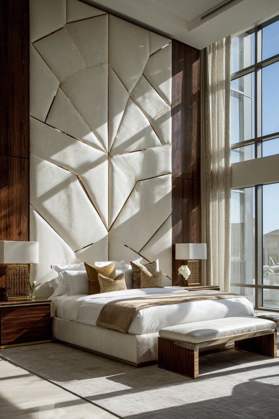 - Extend headboards to ceiling height for dramatic architectural presence