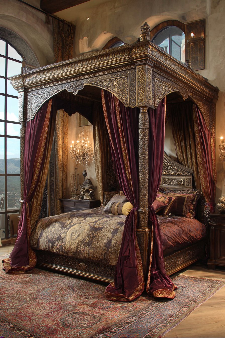 2. Four-Poster Bed with Hand-Carved Details