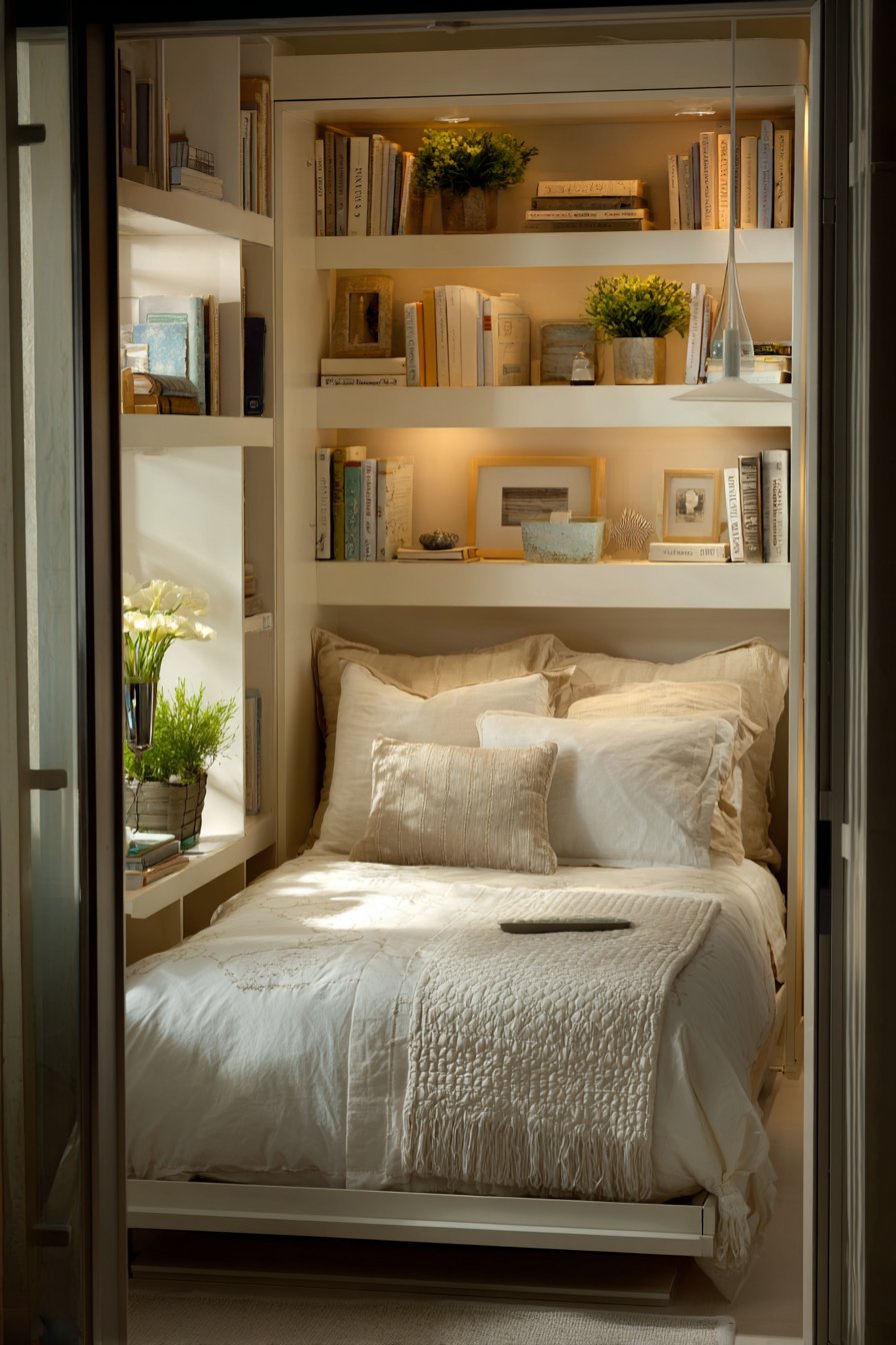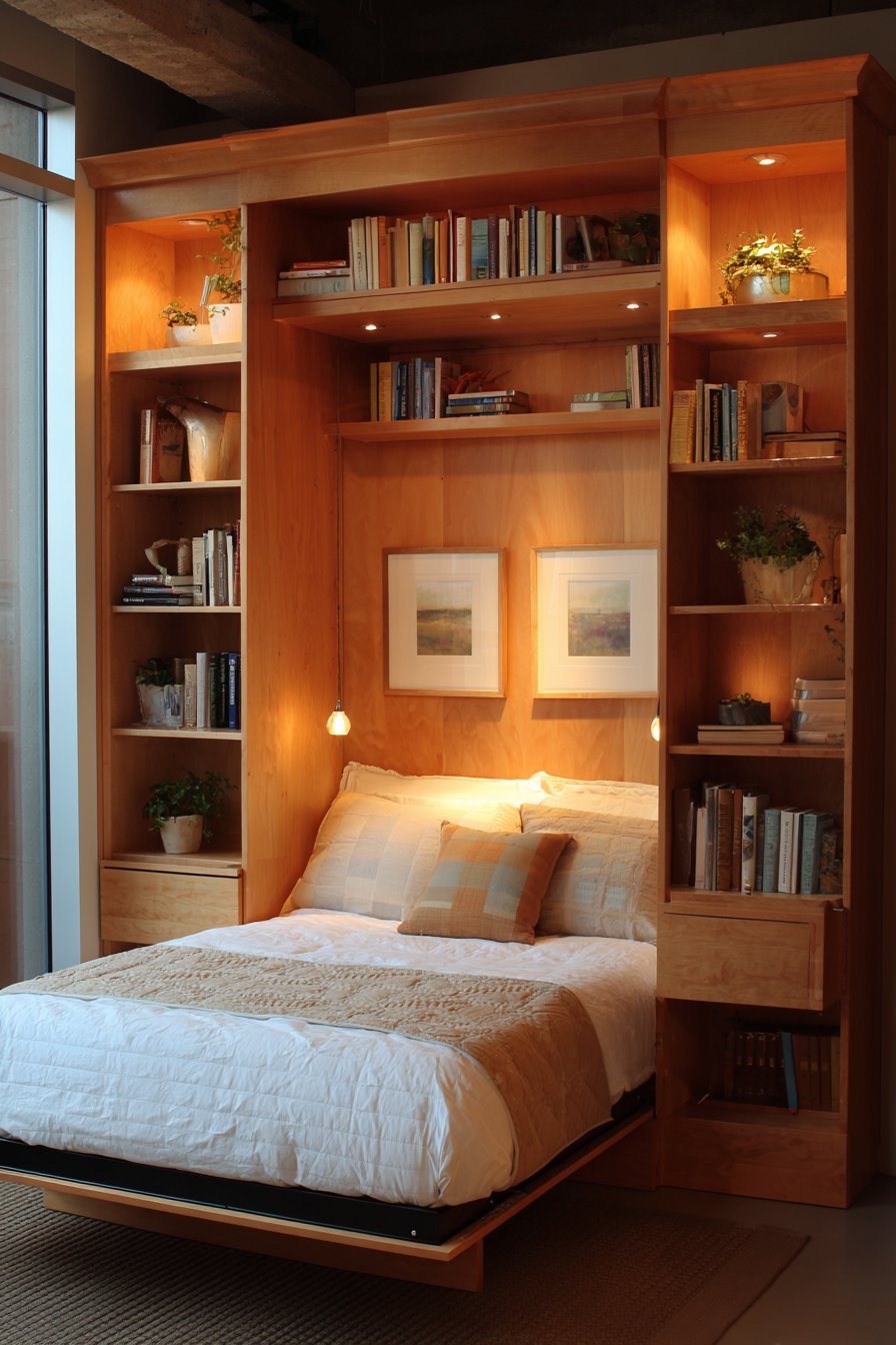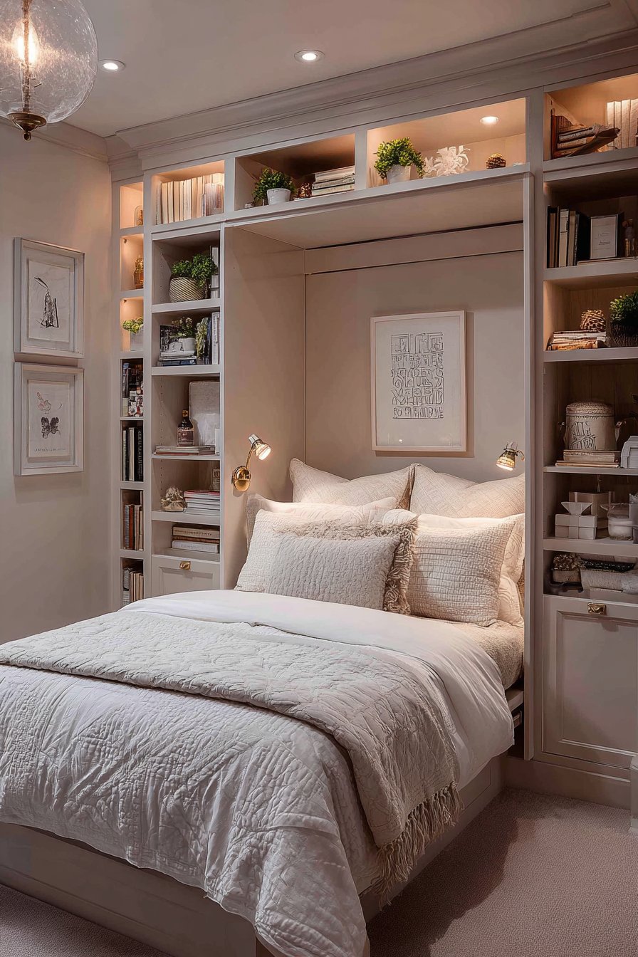 The built-in approach looks custom and intentional. It utilizes space that might otherwise go unused. The storage drawers keep clutter hidden from view. This combination of beauty and function exemplifies smart small-space design.