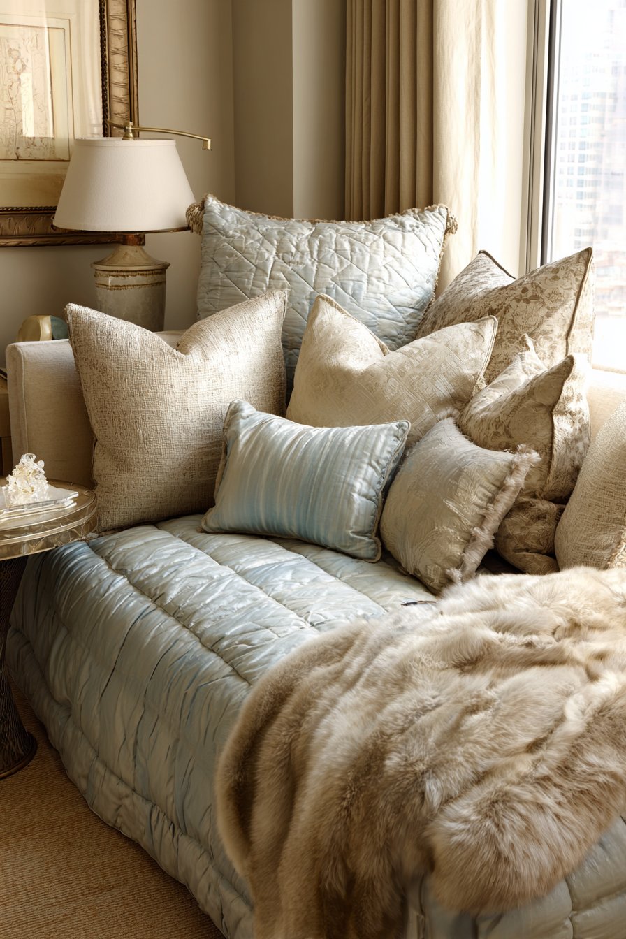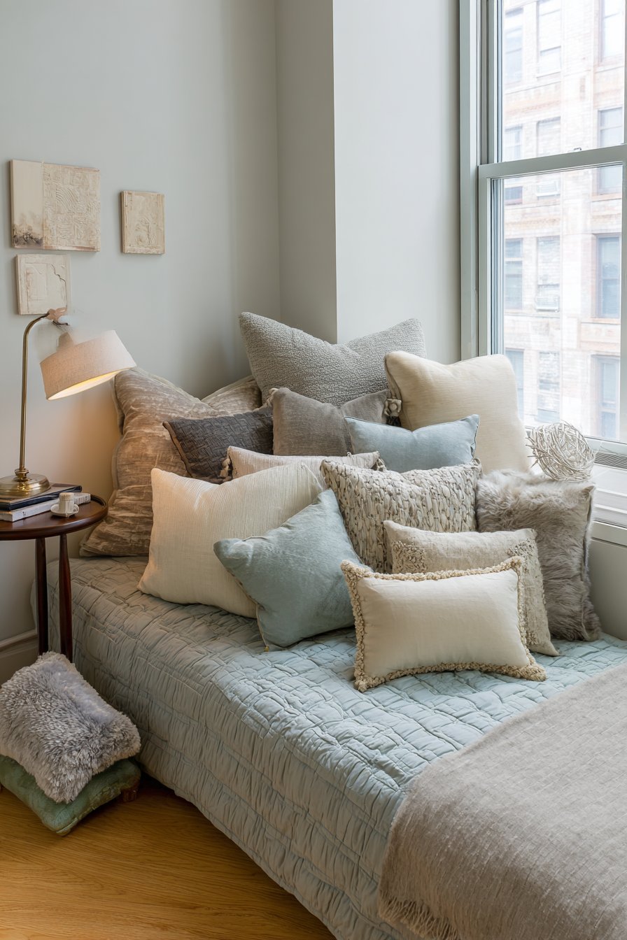 - Layer multiple pillow textures for comfort and interest