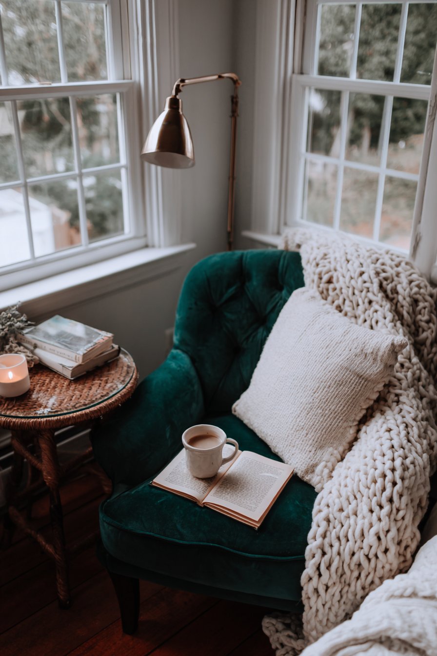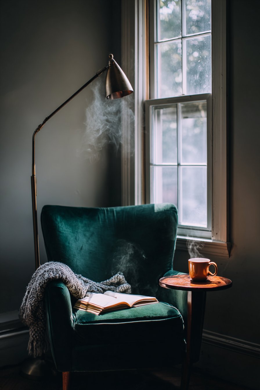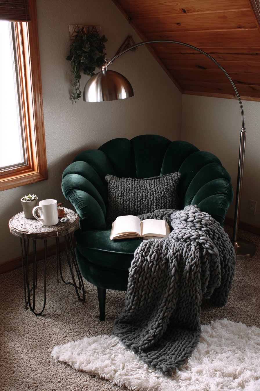2. Emerald Velvet Reading Nook Retreat