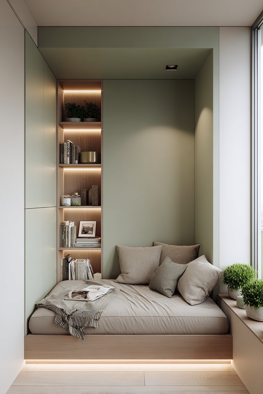 3. Sage Green Built-In Storage Solution