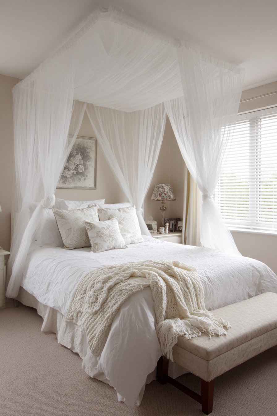 - Install ceiling-mounted canopy rails for space-efficient romance