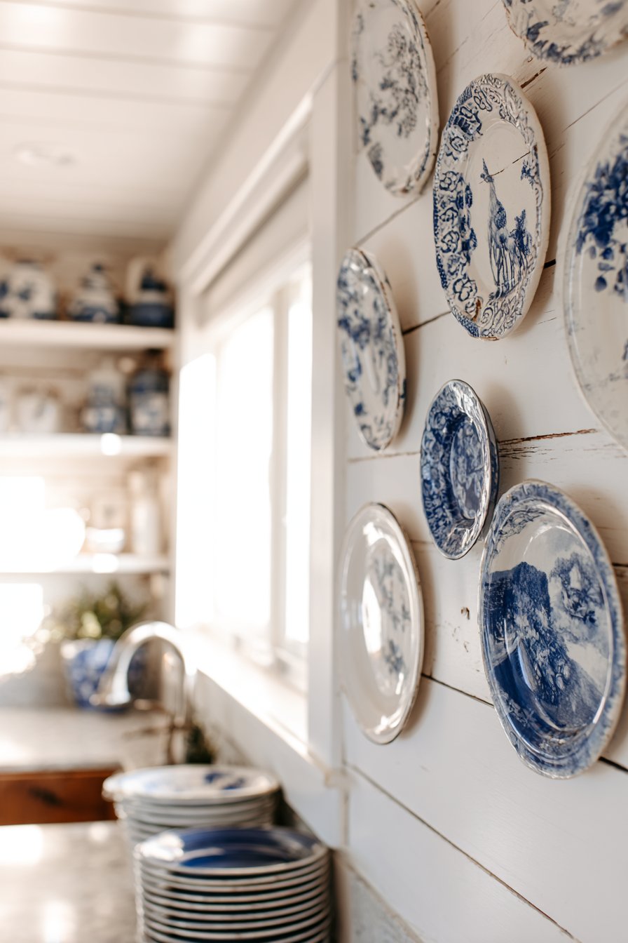 This collection celebrates the beauty of imperfection and history. Each plate tells its own story through chips and discoloration. The blue and cream colors complement farmhouse color schemes perfectly. This approach brings personality without expensive new purchases.