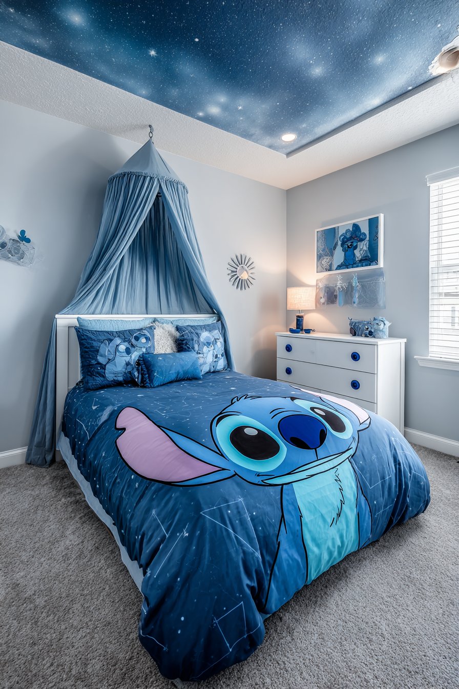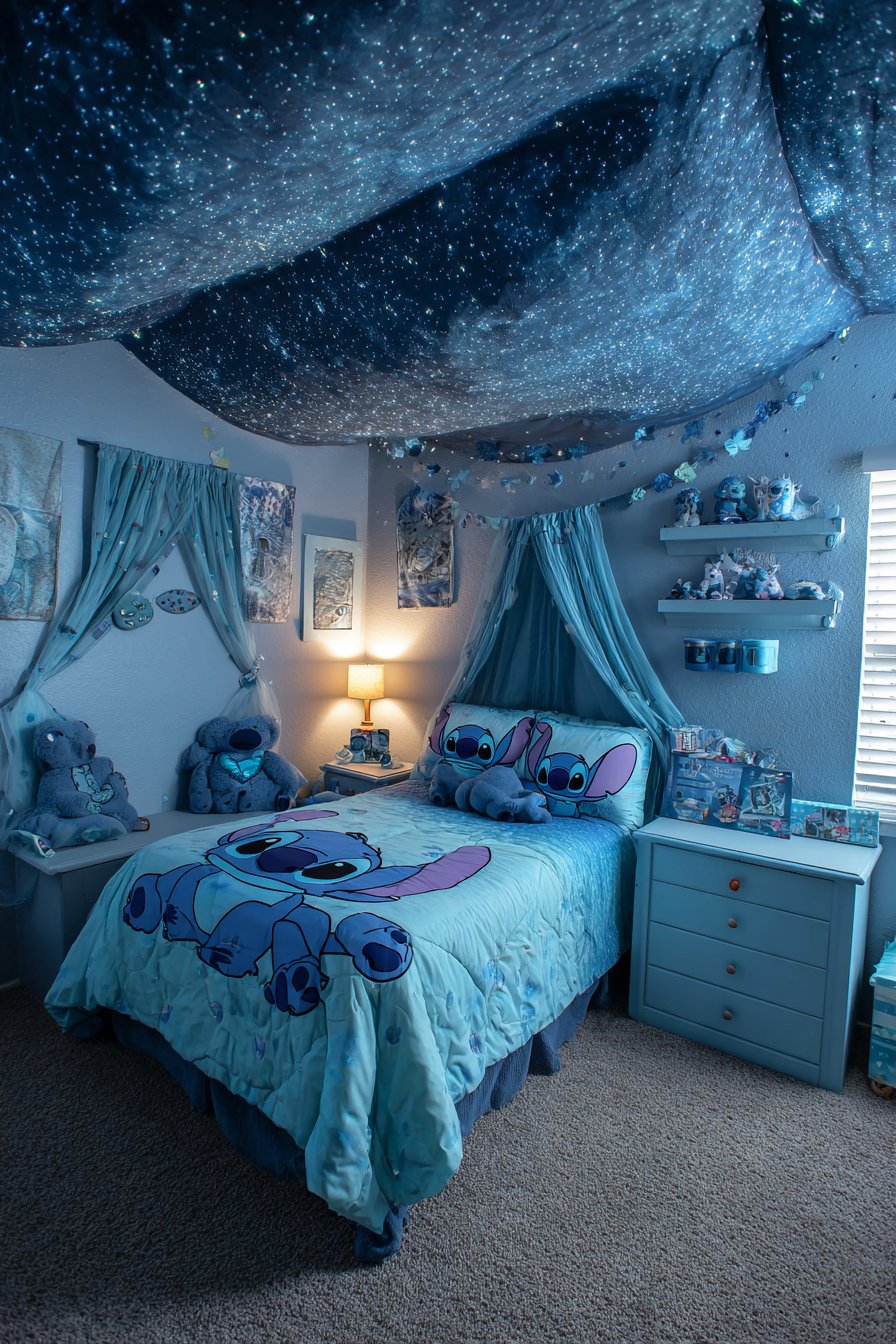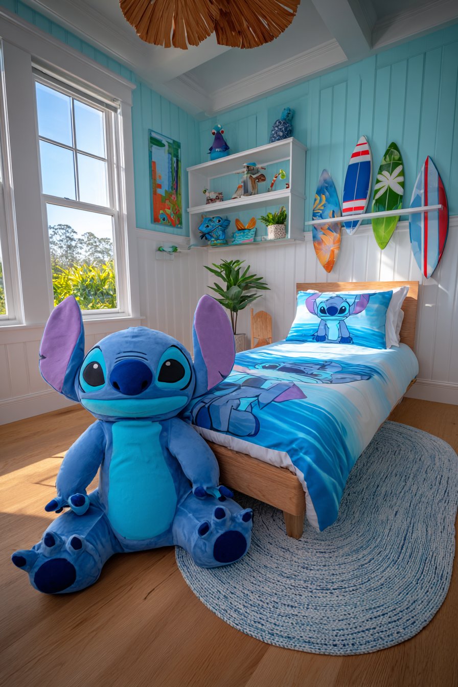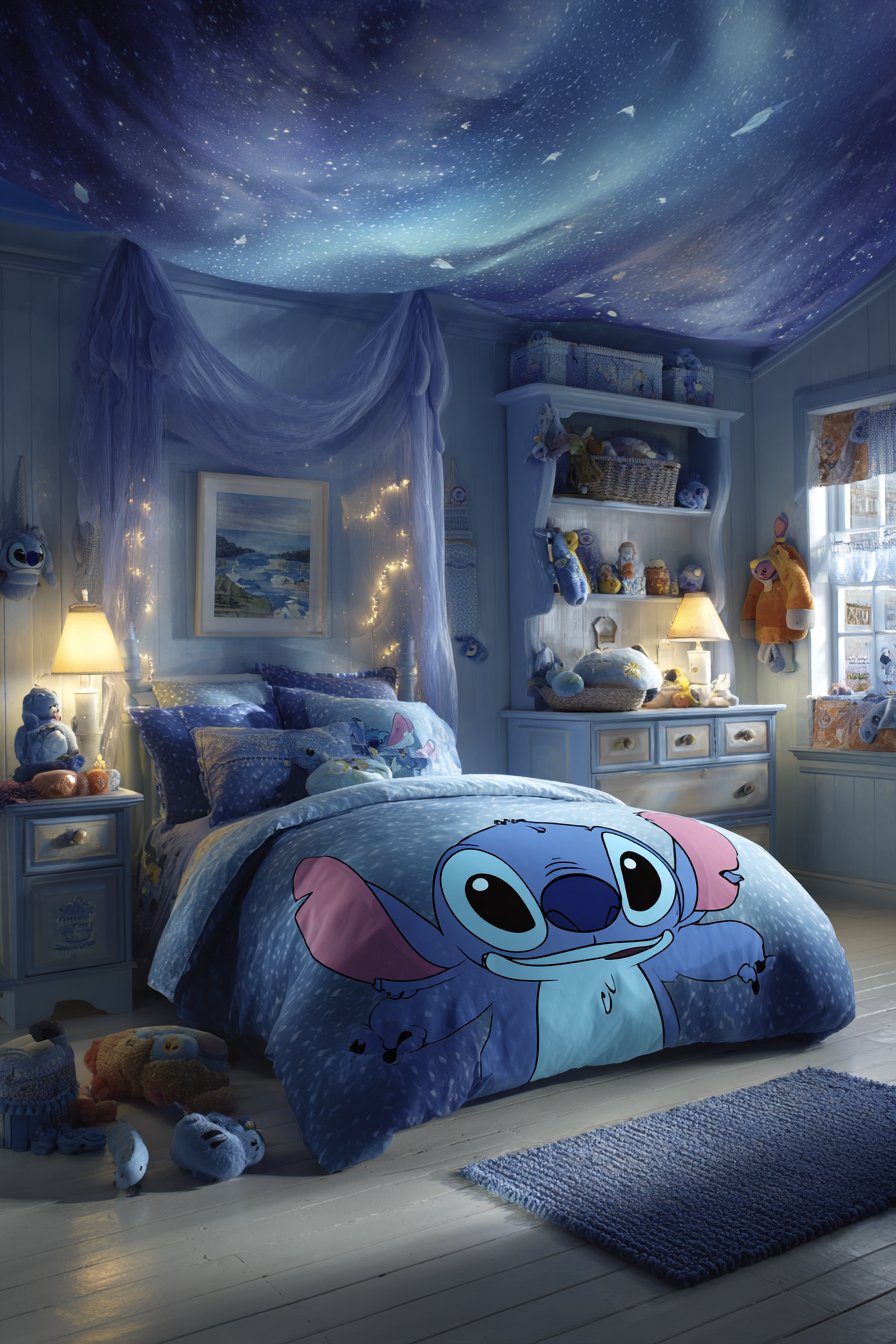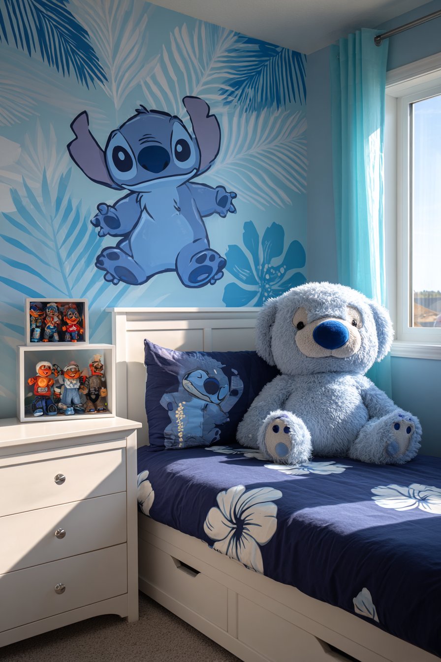 Creating a Stitch-themed bedroom for your child brings the magic of Disney’s beloved blue alien into their personal space. This design approach celebrates character, creativity, and childhood wonder. The combination creates inspiring rooms where imagination flourishes and personality shines through.