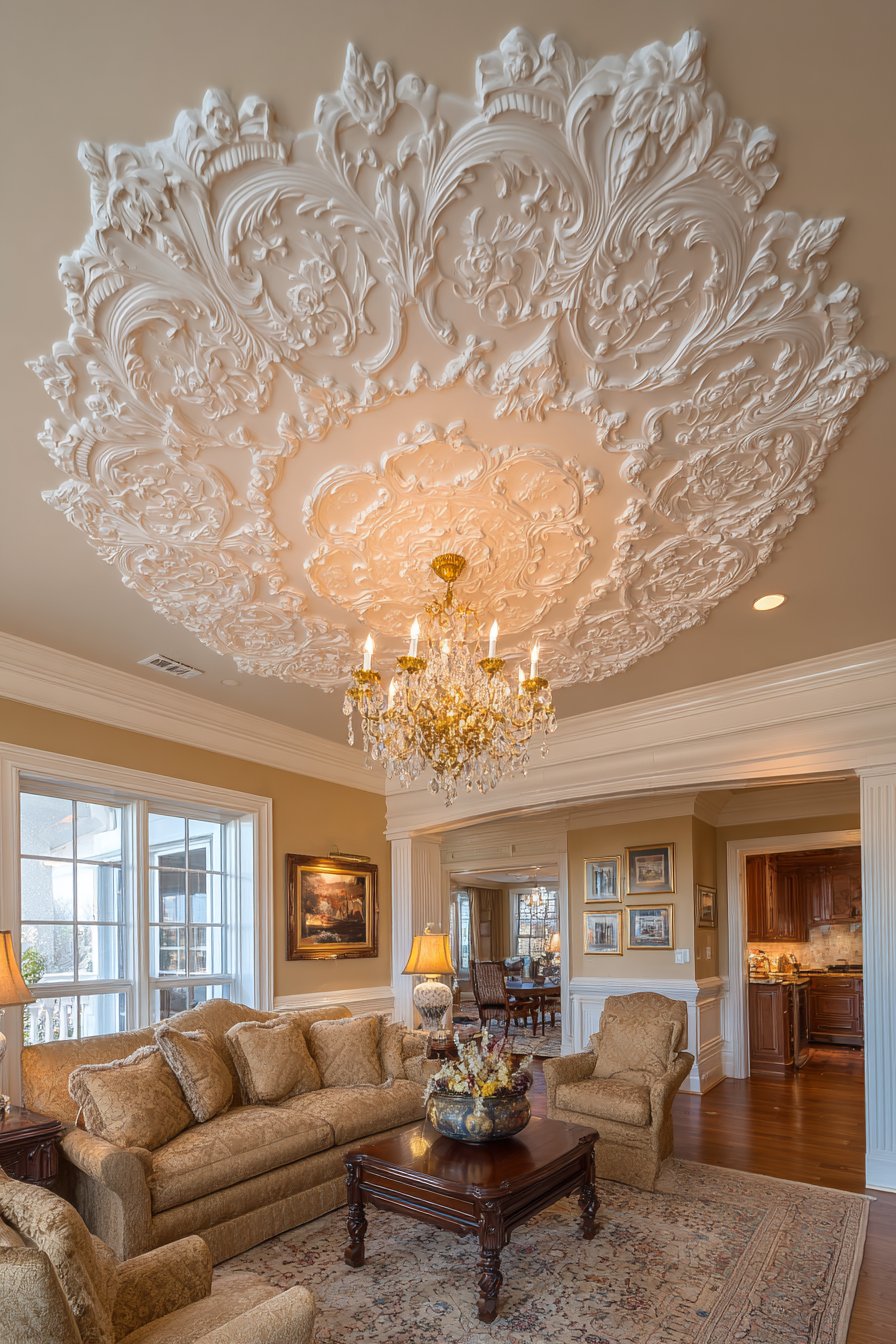 19. Ornate Ceiling Medallion with Crystal Chandelier