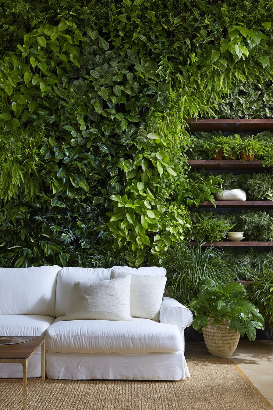 - Select reclaimed tiles and biodegradable planters for a complete eco-conscious design