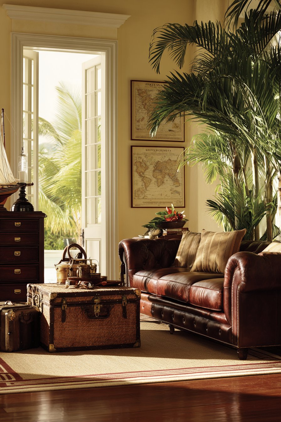 This approach demonstrates how tropical design accommodates formal, traditional aesthetics successfully. The British Colonial influence brings structure and refinement to casual tropical themes. Quality wood and leather age beautifully, developing character that improves over decades. The timeless combination suits those seeking elegant rather than casual tropical interpretations.