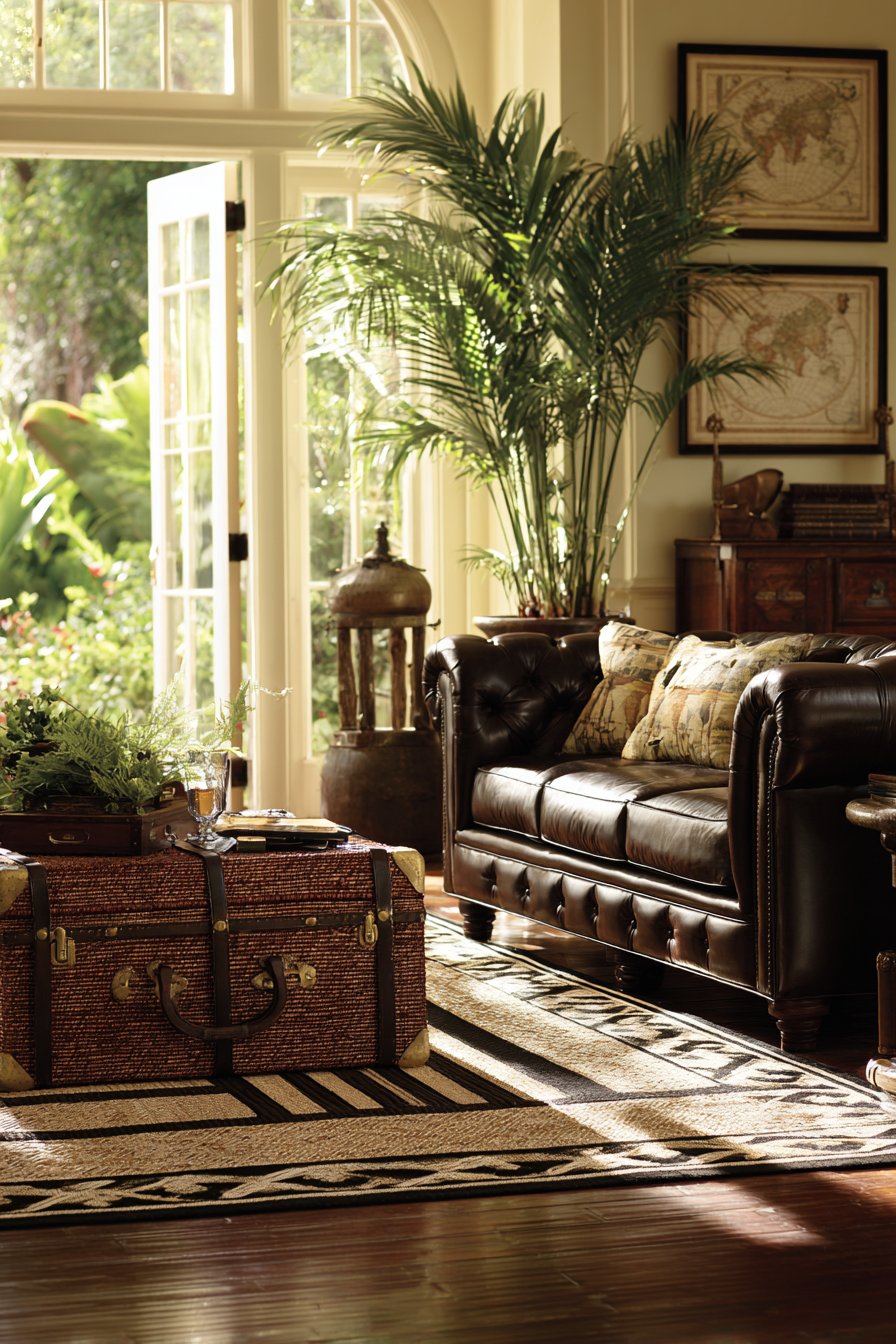 - Use rattan trunks with brass details for sophisticated tropical storage solutions