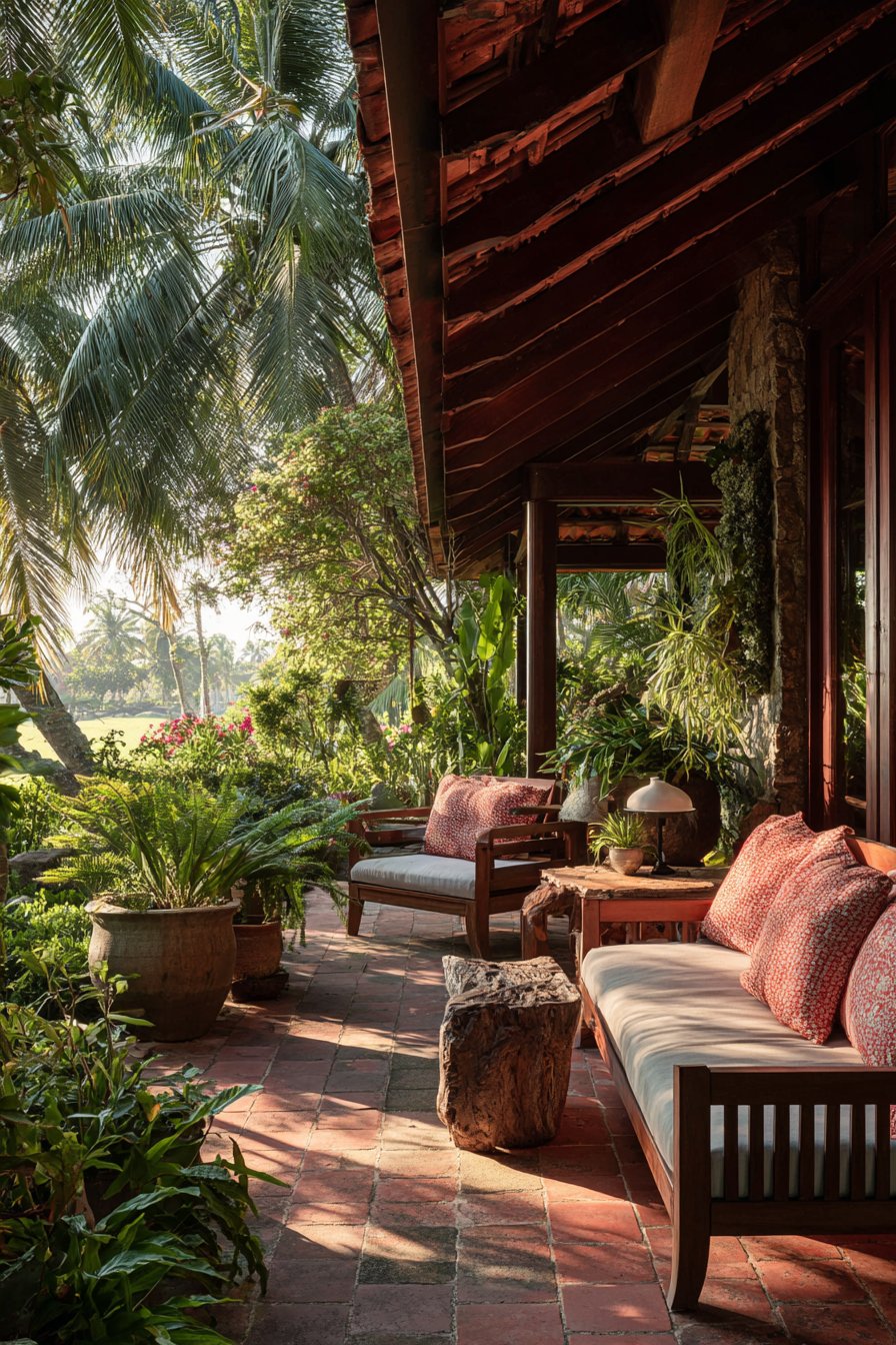 - Select terracotta tiles for natural cooling properties and earthy tropical warmth
