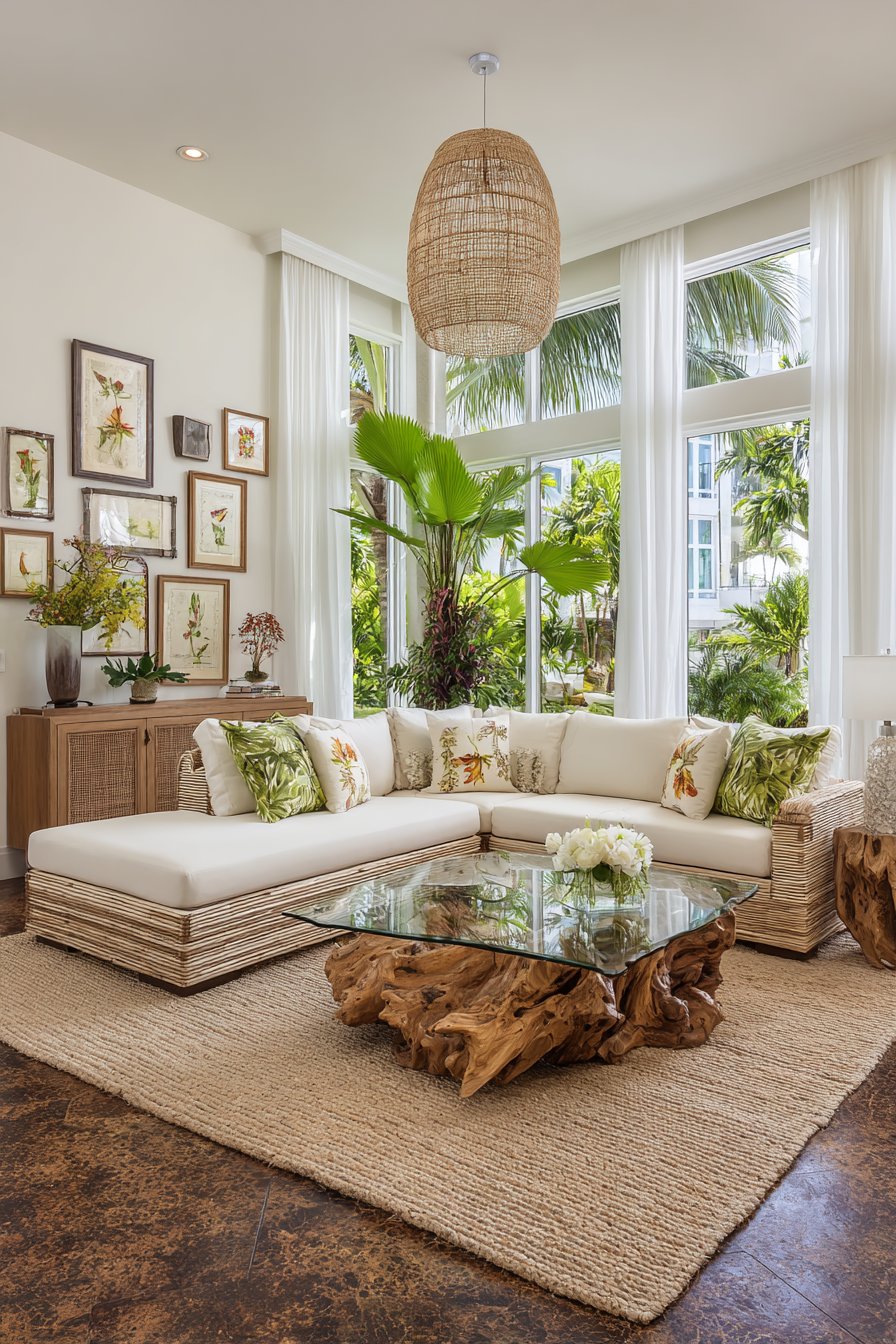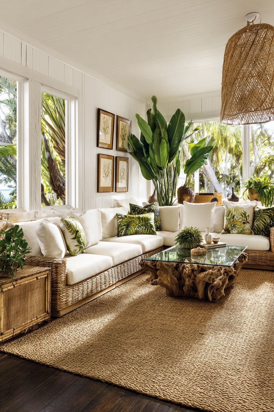 Creating a tropical living room brings the serene beauty of island paradise into your home. This design style celebrates natural materials, lush greenery, and relaxed elegance. The combination creates inviting spaces perfect for both entertaining and peaceful relaxation.